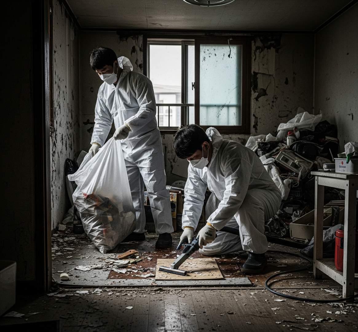 A. 청소 과정에서 발생하는 소량의 일반 쓰레기는 종량제 봉투에 담아 지정된 장소에 배출해 드립니다. 다만, 고객님께서 기존에 가지고 계시던 생활 쓰레기나 대형 폐기물(가구, 가전 등)의 처리는 청소 범위에 포함되지 않으며, 필요시 폐기물 처리 업체를 안내해 드리거나 스티커 발급 비용을 받고 대행해 드릴 수 있습니다. '쓰레기집 청소'의 경우, 폐기물 처리 비용이 견적에 포함되어 한 번에 해결해 드립니다.