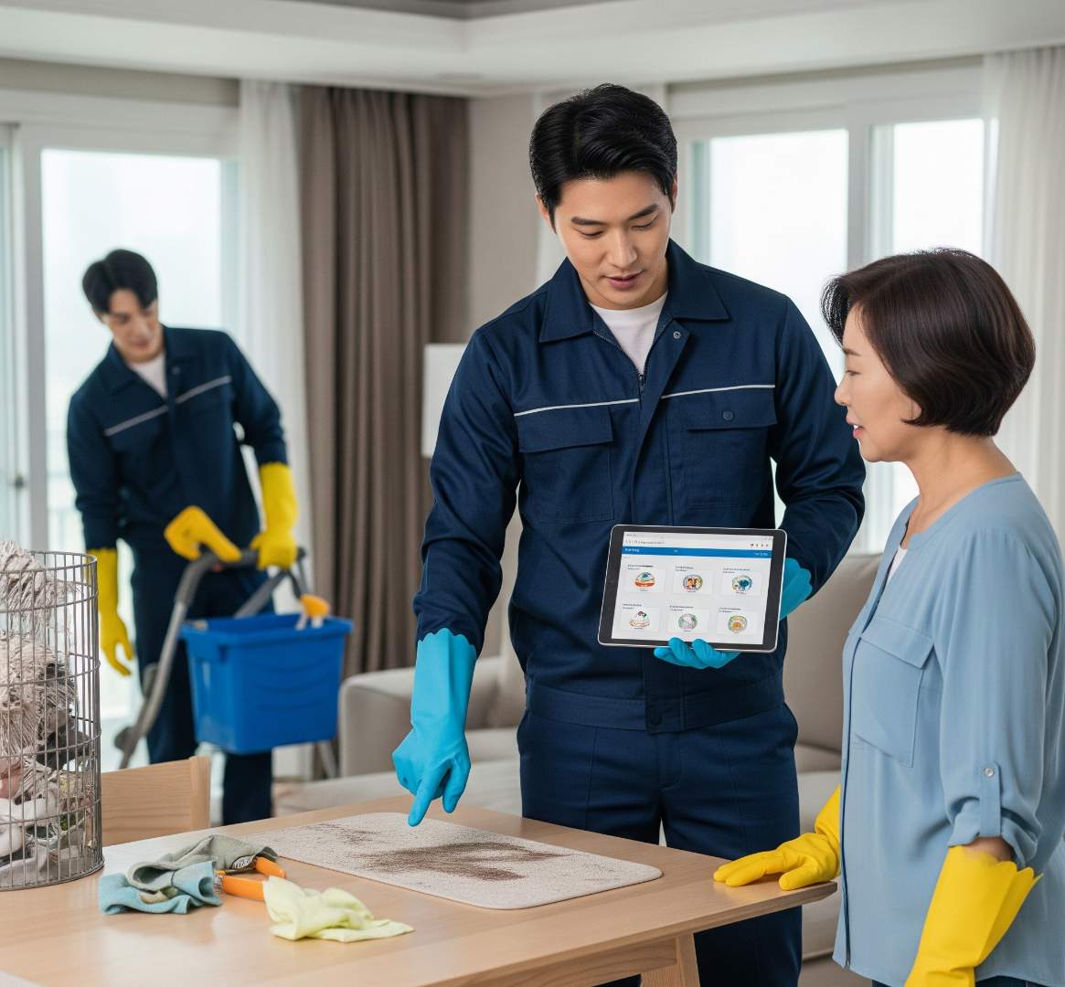A. 견적은 전화 또는 카카오톡을 통해 100% 무료로 받아보실 수 있습니다. 서비스 종류, 평수, 건물 유형을 알려주시면 기본 견적을 안내해 드리며, 현장 오염도를 파악할 수 있는 사진을 보내주시면 더욱 정확한 상담이 가능합니다. 저희는 고객과의 신뢰를 최우선으로 생각하기에, 상담 시 확정된 견적 외에 현장에서 부당한 추가 비용을 요구하지 않는 것을 원칙으로 합니다. 다만, 사전에 협의되지 않은 특수 작업(많은 양의 스티커/시트지 제거, 빌트인 가전 내부 청소 등)이 필요할 경우, 고객님께 충분히 설명하고 동의를 얻은 후에만 작업을 진행합니다.